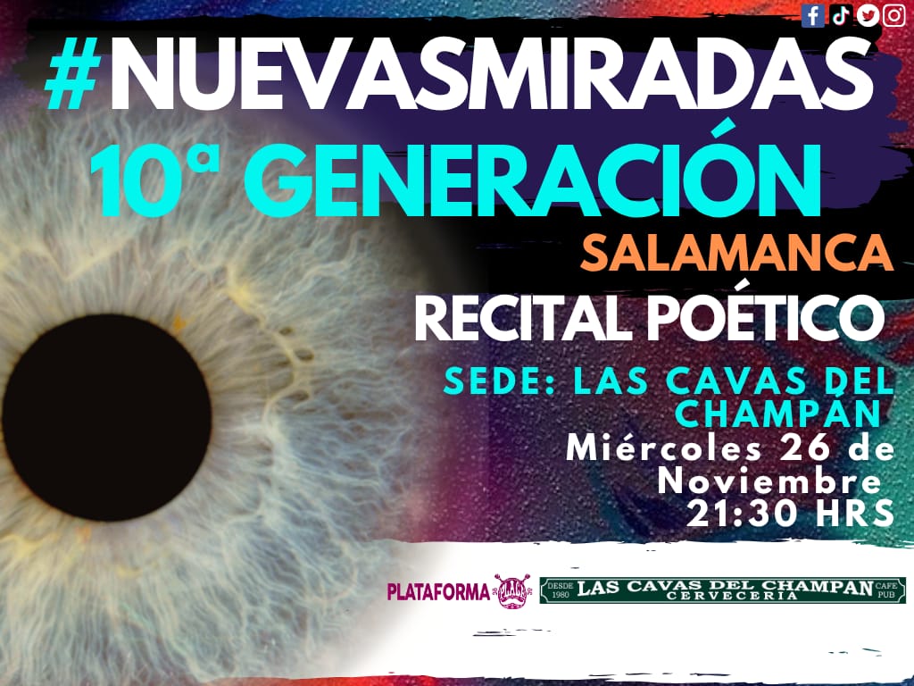 Si tienes 29 años o menos y resides o transitas por Salamanca, mándanos tus textos y no sólo podrás participar en el recital que se celebrará en @lascavasdelchampan el miércoles 26 de noviembre, sino que además tu obra será publicada en la antología de la 10 generación por la @editorialultramarina y distribuida internacionalmente.