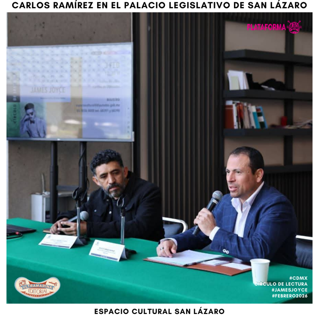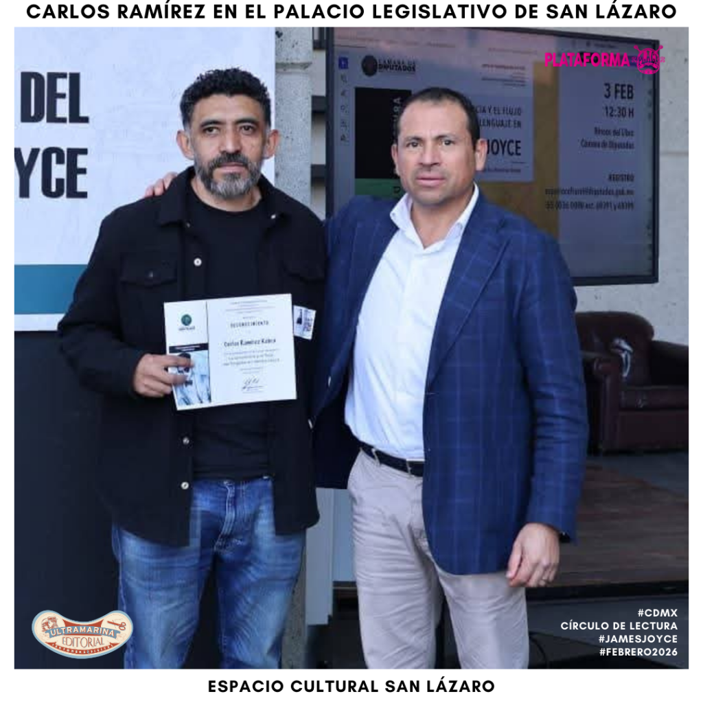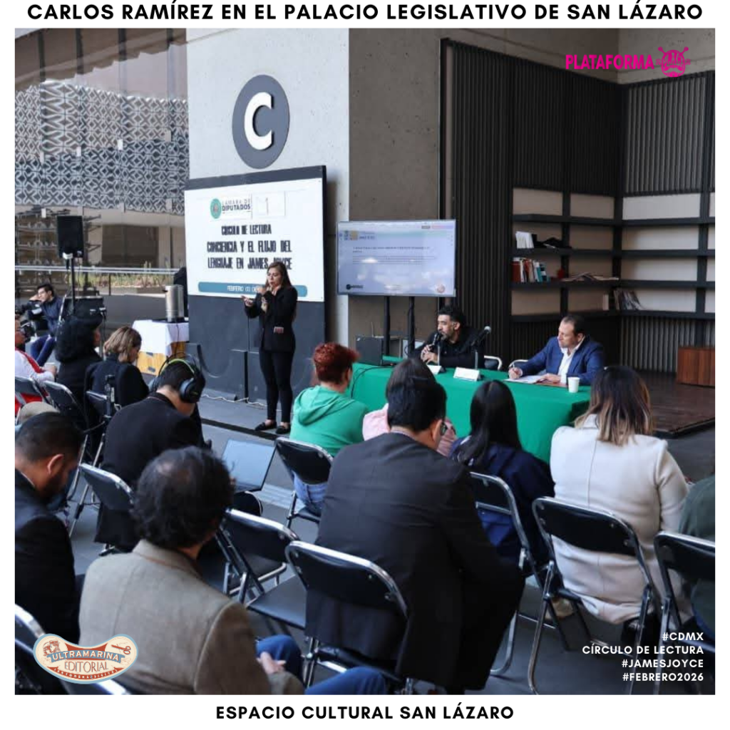 El pasado lunes 3 de febrero de 2026, el Espacio Cultural San Lázaro de la Cámara de Diputados de México organizó el Círculo de lectura: La conciencia y el flujo del lenguaje en James Joyce, impartido por el artista transmedia, escritor y gestor cultural Carlos Ramírez Kobra, coordinador de la Plataforma PLACA en México y autor publicado por Editorial Ultramarina C&D.